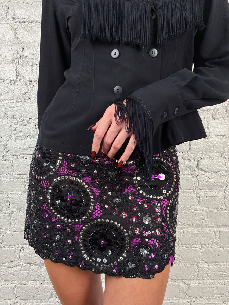 Plein Sud 1990s Black Fringe Blazer