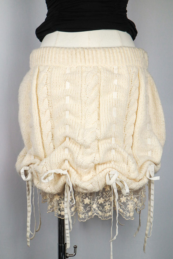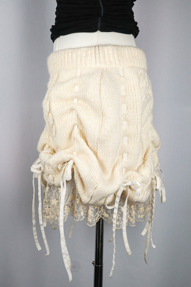 Gianni Versace Istante Cream Knit Bubble Skirt with Lace