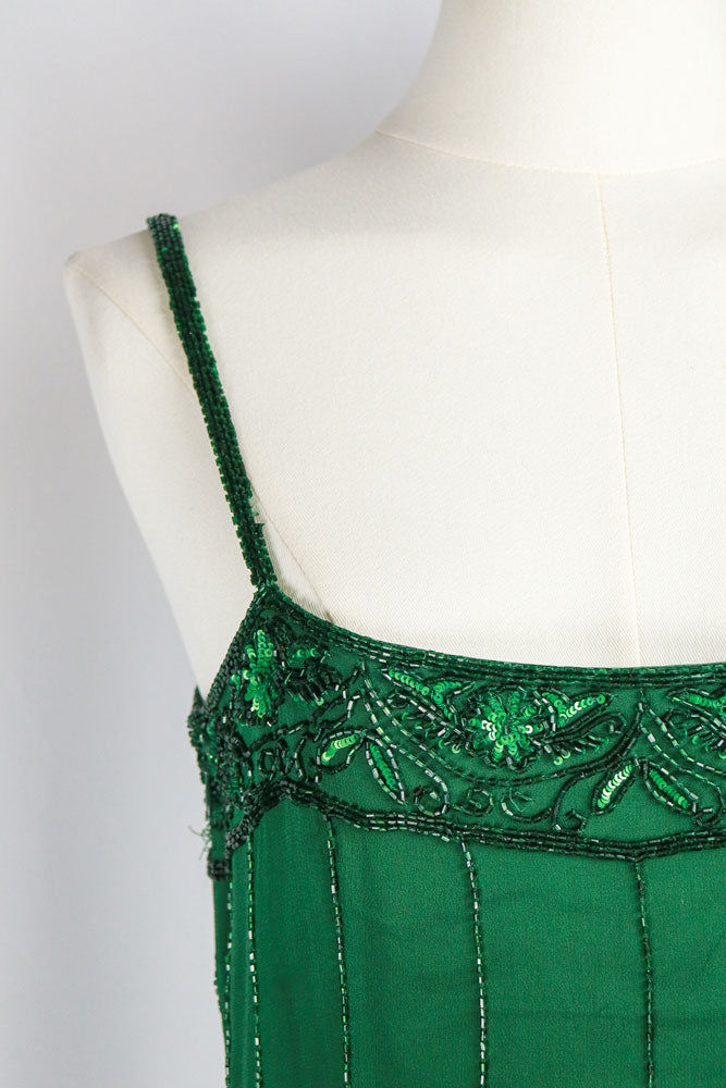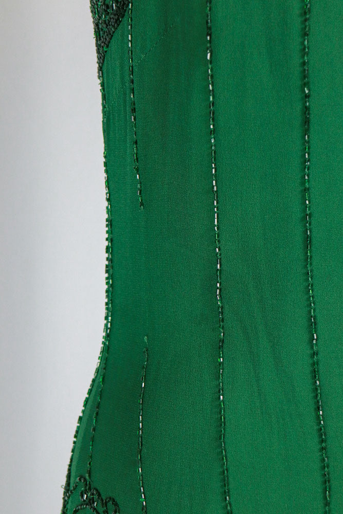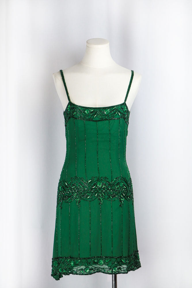 Vintage Silk Green Beaded Mini Dress