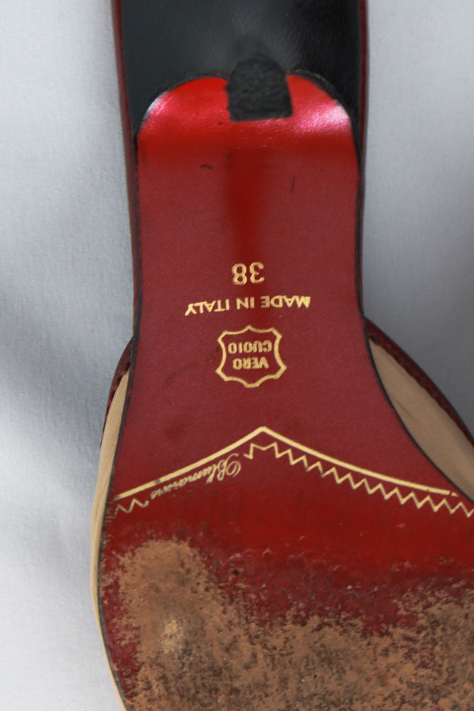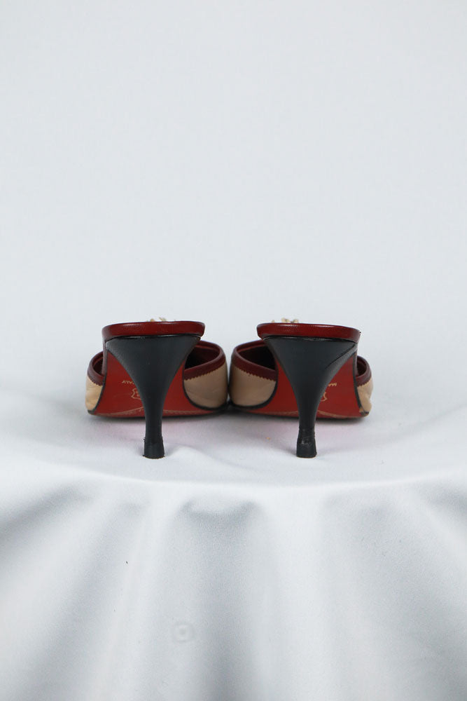 Blumarine Red and Beige Rosette Heels