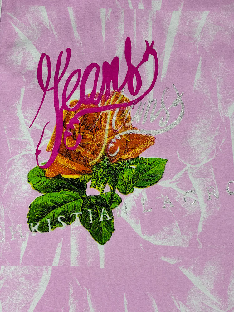 We sourced this Christian Lacroix Jeans tank for its vibrant color and signature maximalist print — a hallmark of Lacroix’s 2000s diffusion line. Featuring a painterly rose motif layered with metallic lettering, it blends romantic and graphic elements seamlessly. Made in Italy from soft stretch cotton, it’s a standout piece that captures the brand’s playful yet refined aesthetic.