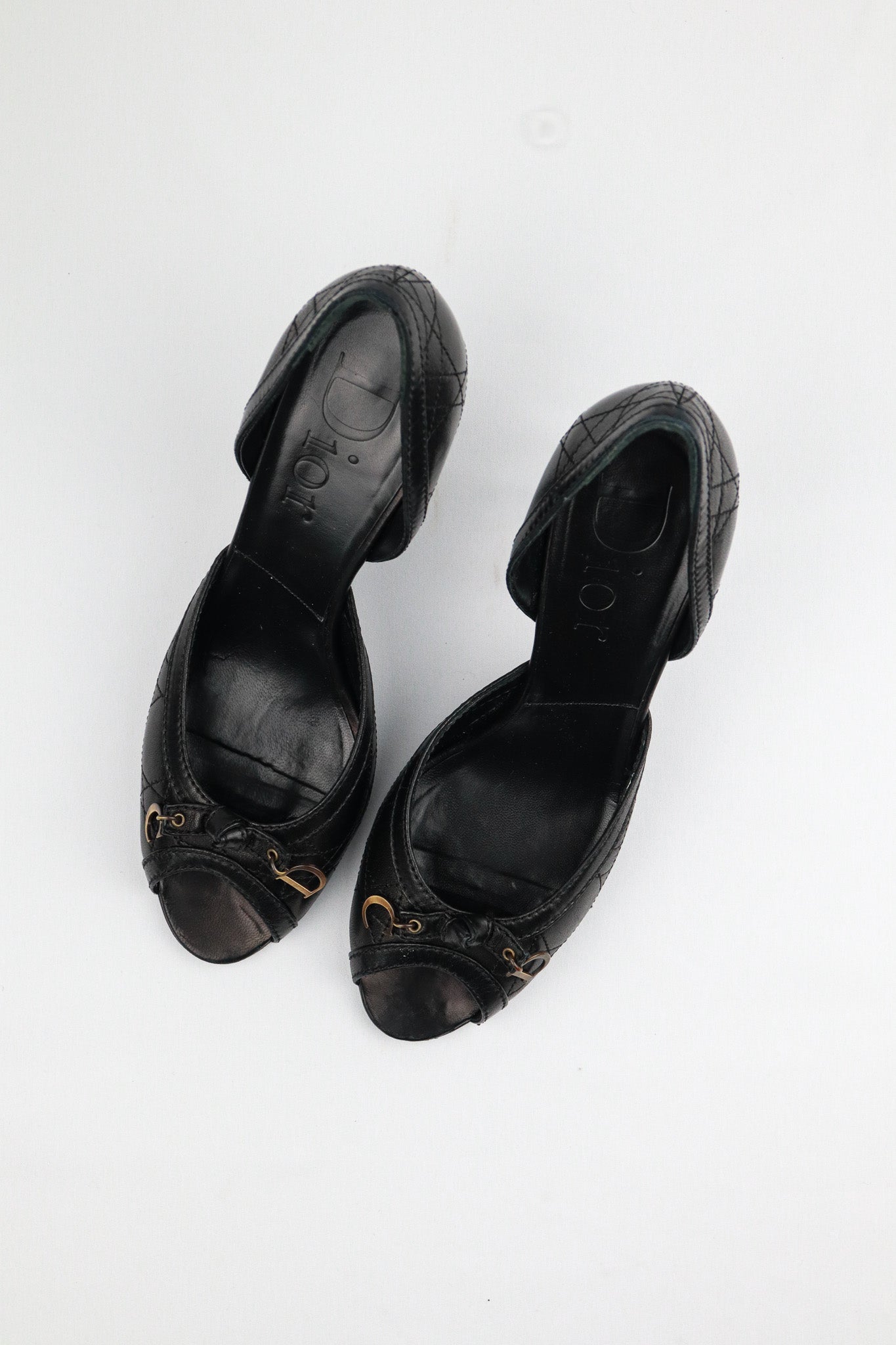 Christian Dior 2000s Cannage Leather Peep-Toe d’Orsay Heels - EU 39.5