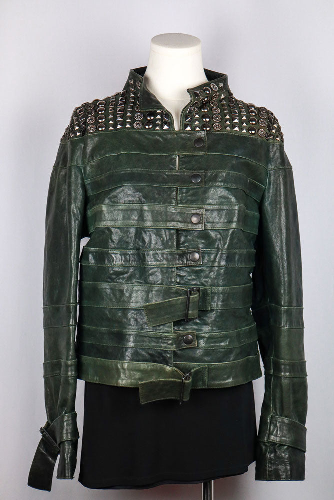 Gil Santucci Studded Dark Green Leather Jacket