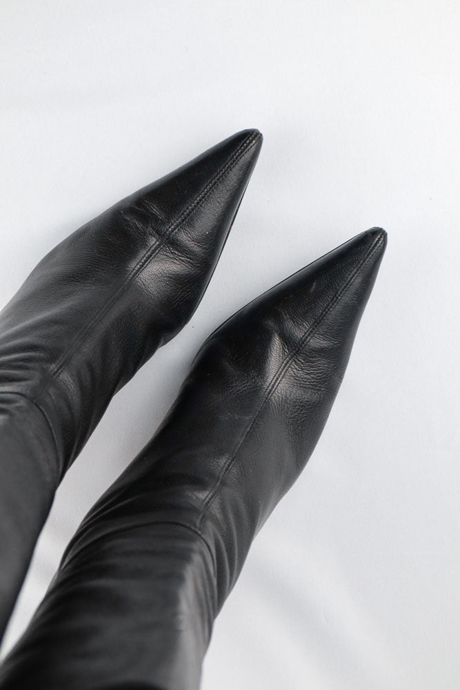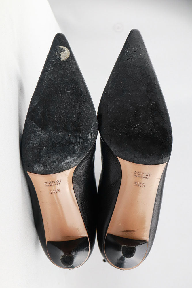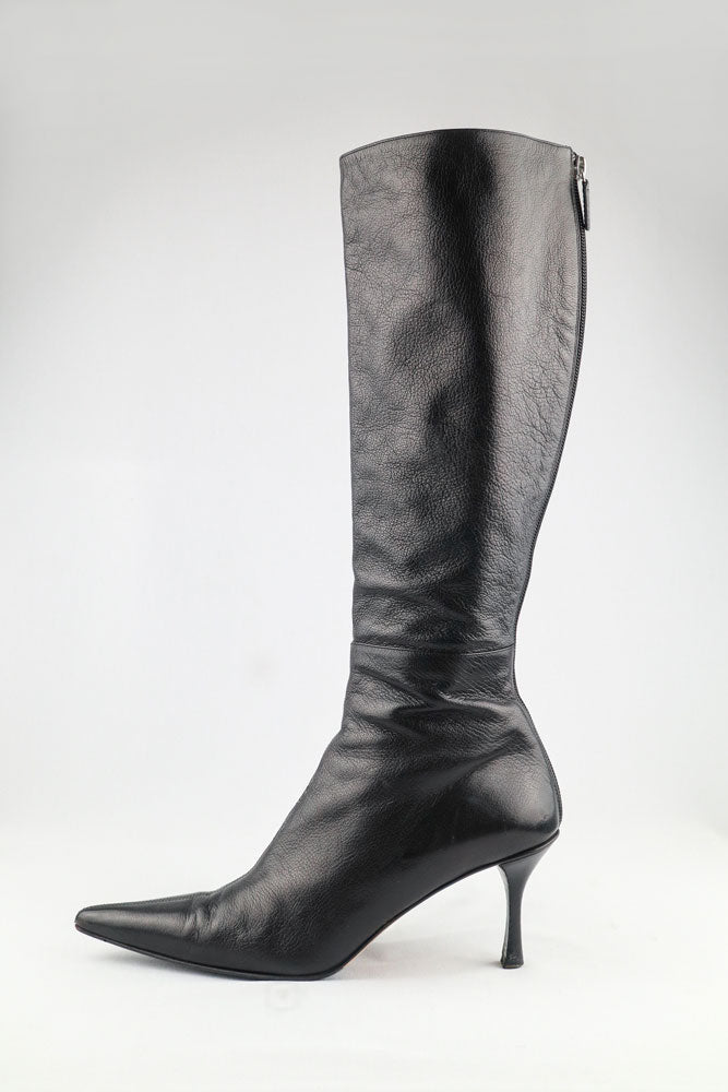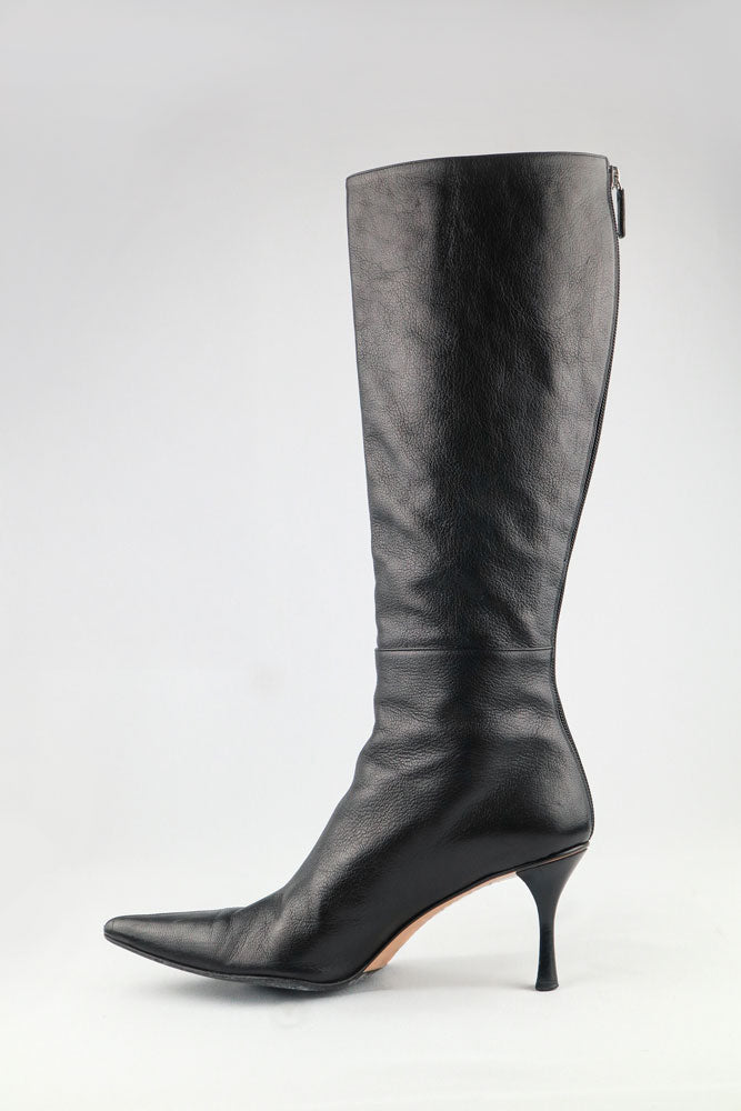 Gucci Black Leather Knee-High Heeled Boots - US 9.5