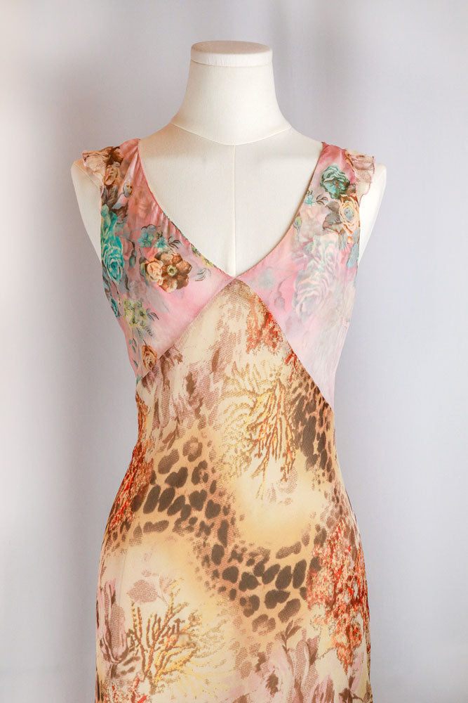 Vintage Italian Silk Floral & Cheetah Maxi Dress