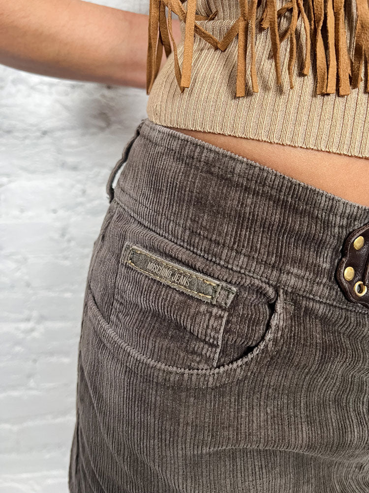 Moschino 2000s Brown Corduroy Mini Skirt with Belt