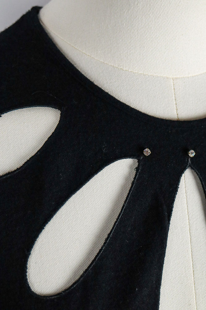I sourced this early-2000s Blumarine knit top with winter holiday dressing in mind. The neckline cutouts feel so true to the brand’s playful, feminine designs. The teardrop openings and tiny crystals add a refined touch, and the wool-blend knit gives it a soft, stretchy fit that works perfectly with jeans, minis, or layered looks. It is a simple silhouette with a standout detail.
