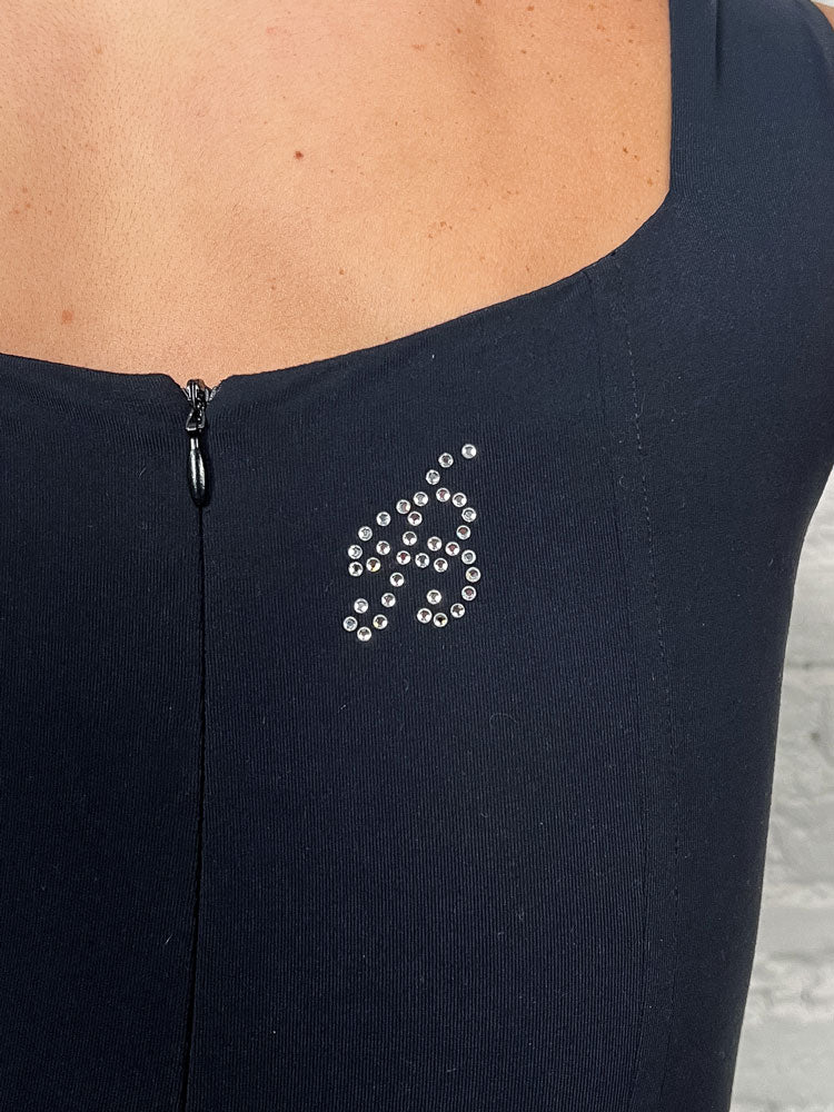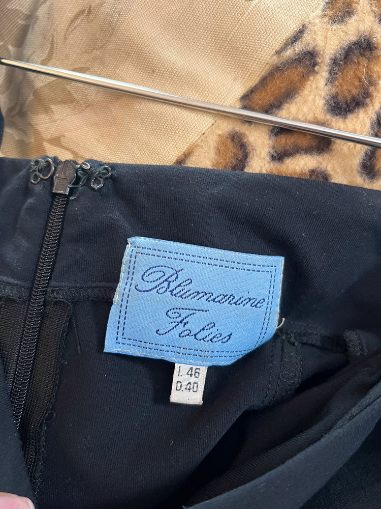 I sourced this early-2000s Blumarine Folies mini because it has that perfect flirty Blumarine shape with a fitted bodice and a full ruffled hem that moves beautifully. It feels so now with the return of romantic mini dresses styled with tall boots. The top has some boning in it and the overall material has stretch. Blumarine Folies was the younger, more playful line in the 2000s, and this dress is exactly that era.