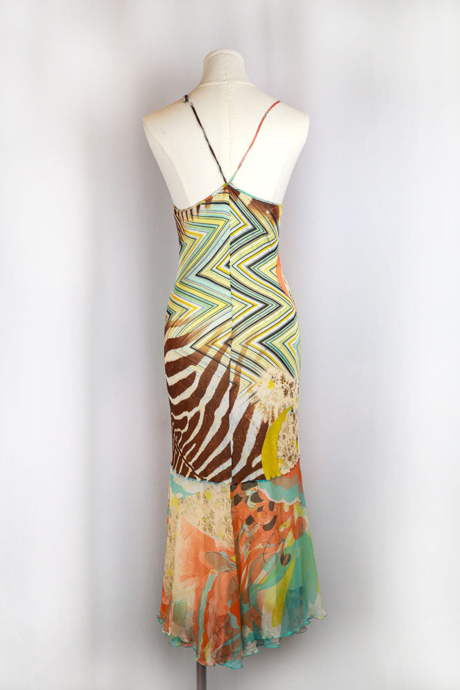 Roberto Cavalli 2000s Multicolor Abstract Silk Maxi Dress
