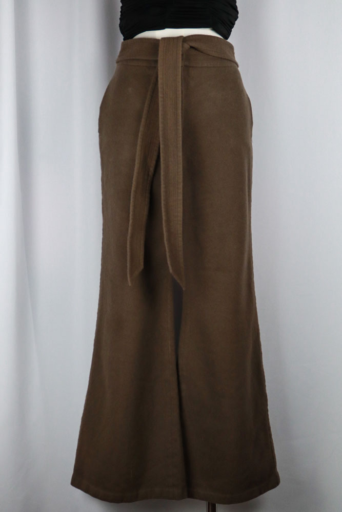 I sourced these early 2000s Class Roberto Cavalli trousers because the shape is so refined and the fabric feels expensive. The wool cashmere blend has a soft, warm hand, and the built-in wrap belt gives them that quiet but intentional Cavalli detail. They flare nicely from the knee down and create a long, clean line that looks good with everything from a fitted top to a chunky knit.