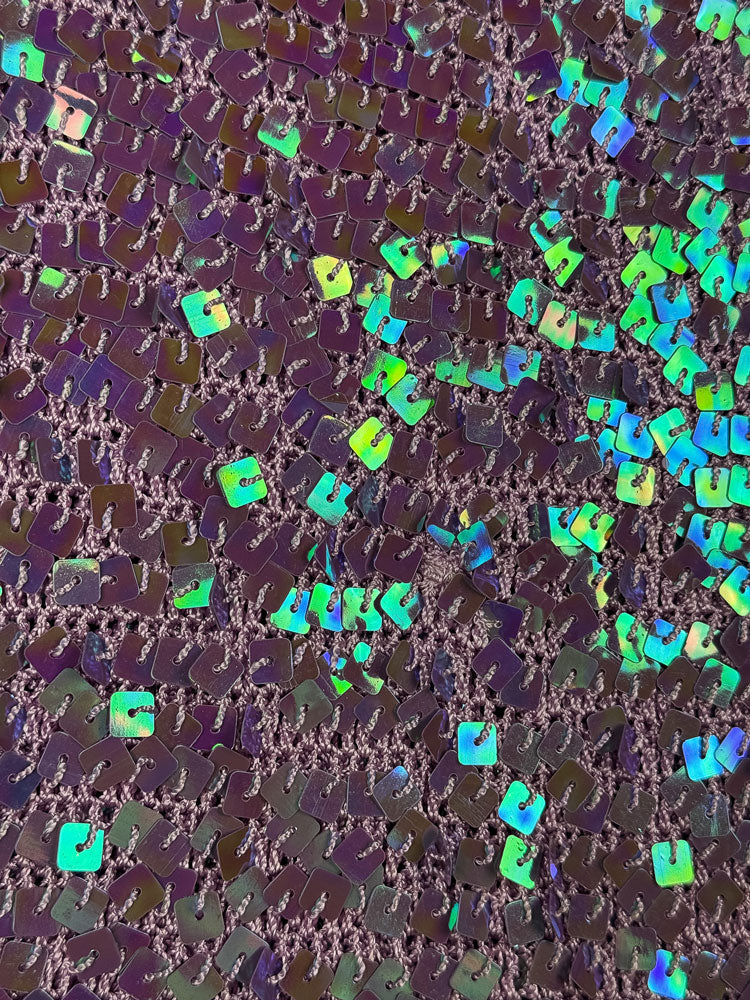 Channel early-2000s nightlife energy with this lilac sequin tank from BEST Nightlook. Handmade from soft rayon knit and fully covered in iridescent square sequins, it shimmers in shades of lavender, mint, and silver under the light.